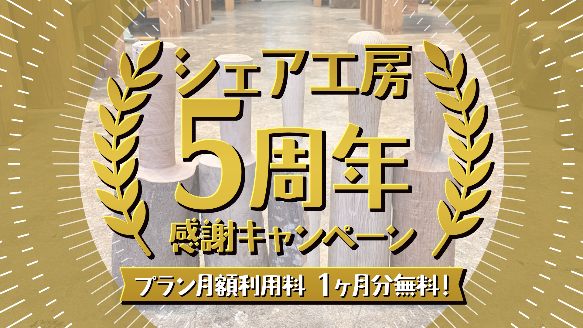 【 1ヶ月分無料 !】 シェア工房5周年 感謝キャンペーン開催中!!