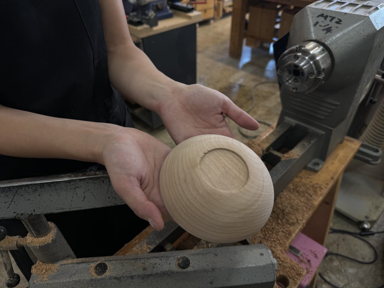 木工旋盤を使って機械・刃物の使い方をボウルをつくりながら実践していきます。