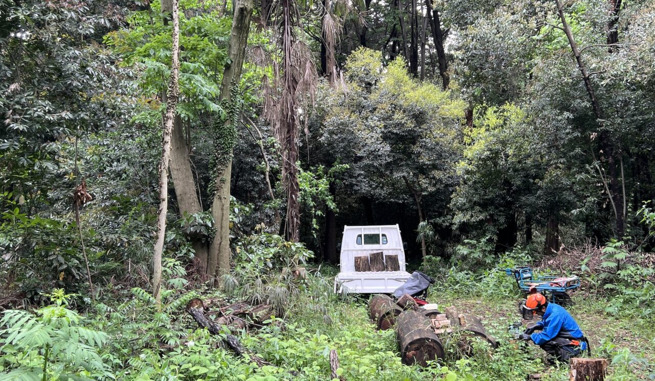 ウッドワークセンターのグリーンウッドワークに使用する生木は、私たちを取り巻く環境と自分たちの暮らしが結びつくよう、地域の間伐材や未利用材をつかいます。