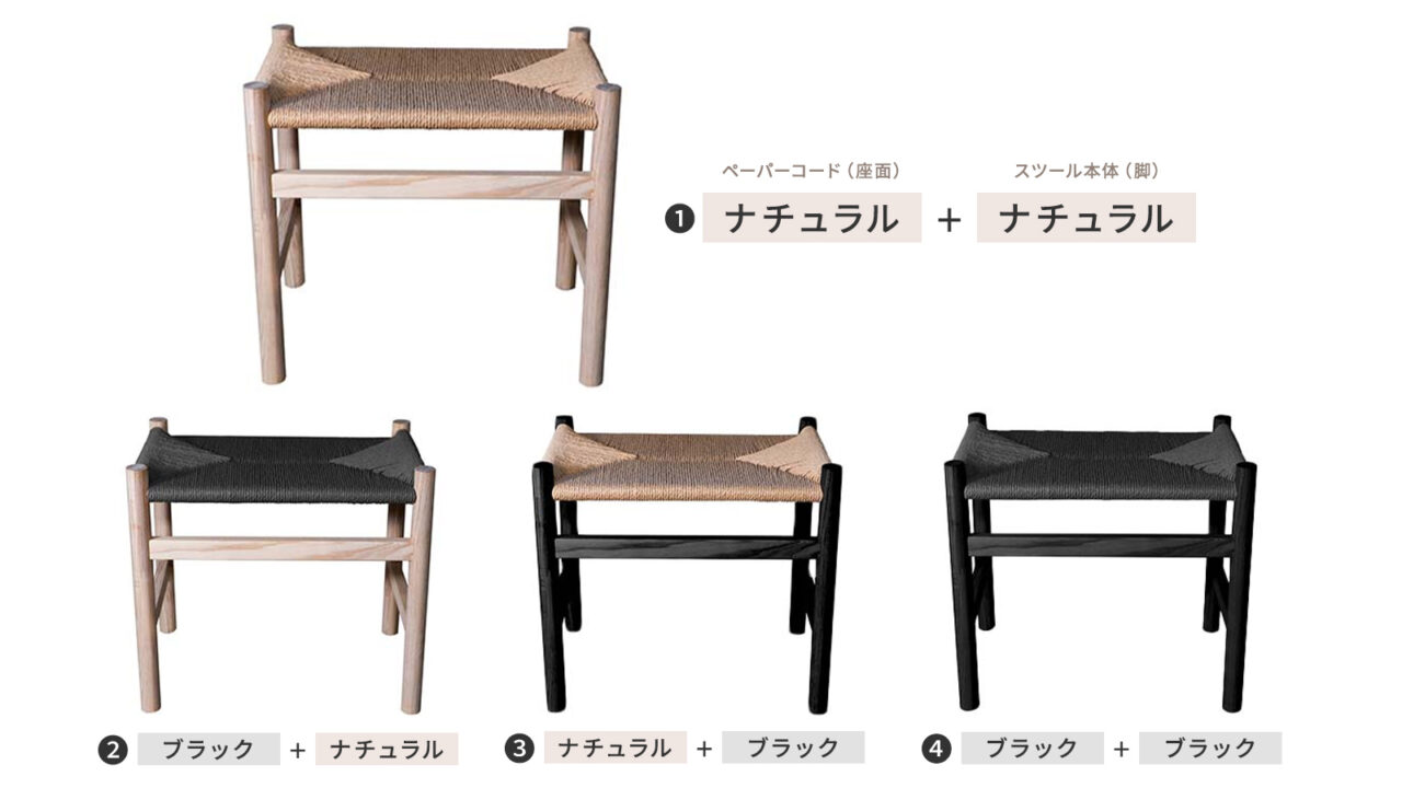 ※製作希望のペーパーコードの色とスツールの組み合わせを4種類からお選び下さい。